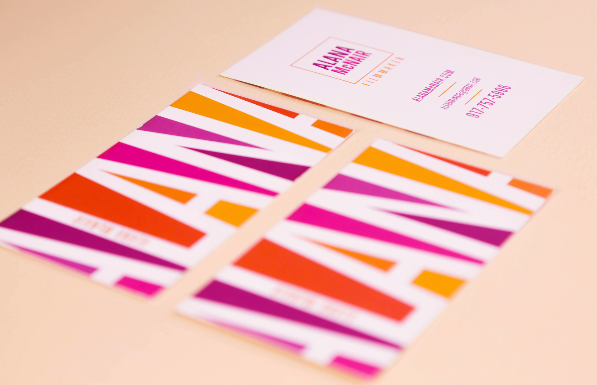 Filmmaker/Writer/Musician Alana McNair needed a business card to share with producers and collaborators. The bold design and bright color palette play with the rhythm in the letters of her name and complement her personality and style. (And she took most of the photos included in my portfolio.) Check out her work!