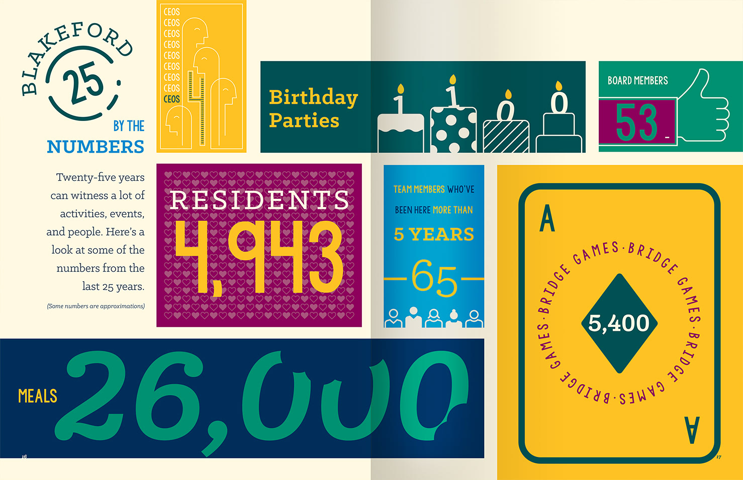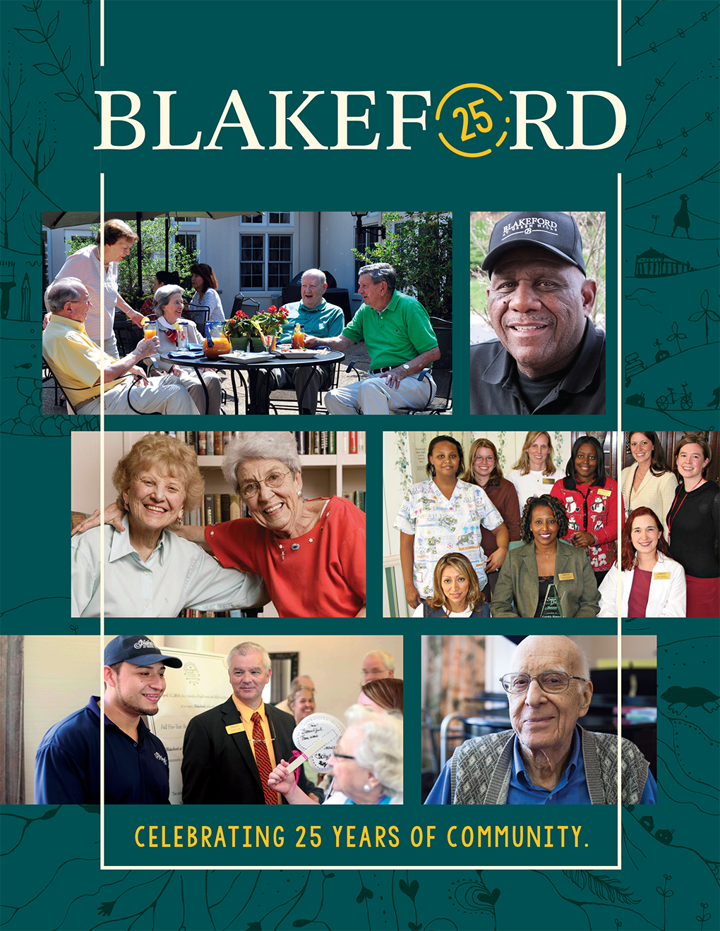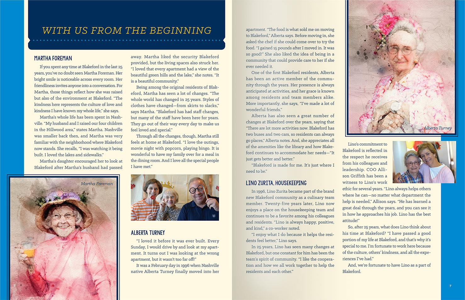 Blakeford has provided a range of housing, community, and assistance for seniors in Nashville, TN for over 25 years. I was asked to create a logo and print magazine as part of the anniversary celebration. Articles, interviews, photos, and fun data showcase the vibrant lives of the residents and the significant impact of the staff on the people in their care.