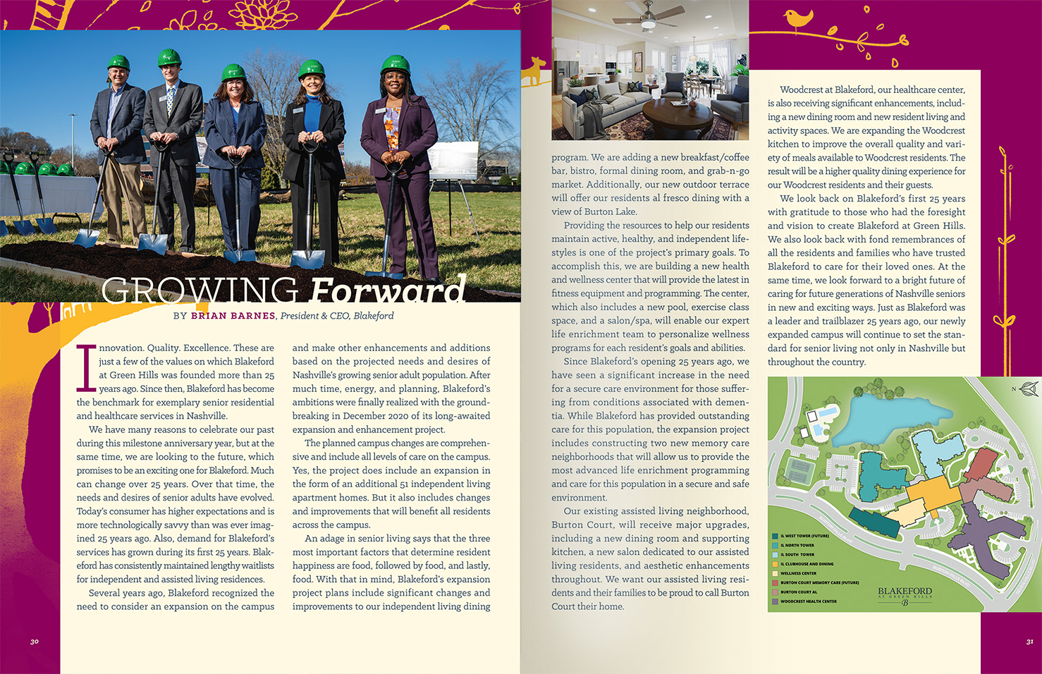 Blakeford has provided a range of housing, community, and assistance for seniors in Nashville, TN for over 25 years. I was asked to create a logo and print magazine as part of the anniversary celebration. Articles, interviews, photos, and fun data showcase the vibrant lives of the residents and the significant impact of the staff on the people in their care.